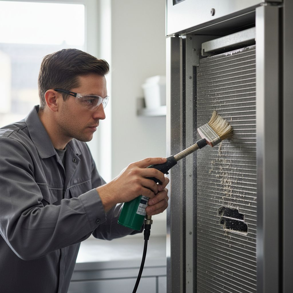 - Dégagement des condenseurs : C’est le point le plus critique. Le condenseur est le « poumon » de votre machine. S’il est bouché par de la graisse ou de la poussière, la chaleur ne s’évacue plus. Un coup d’aspirateur ou de brosse souple une fois par mois sur les ailettes du groupe logé est impératif.